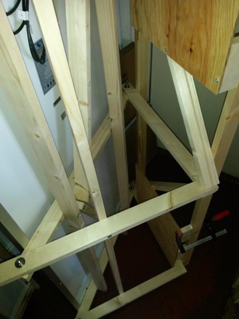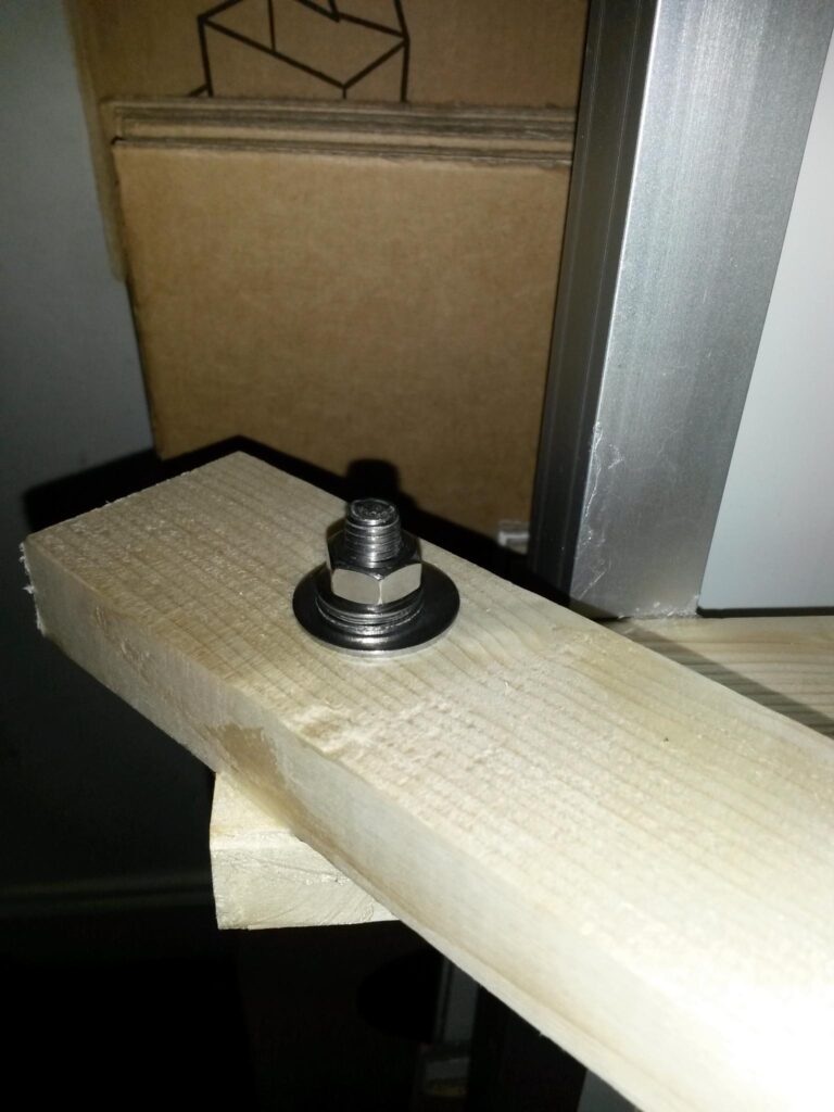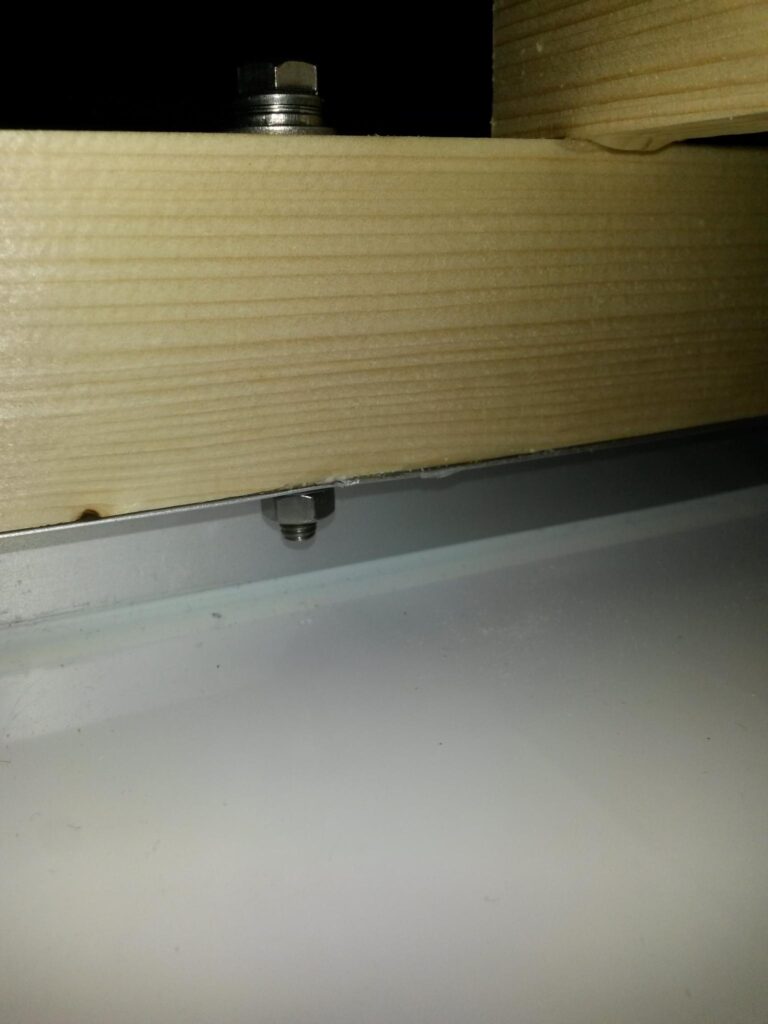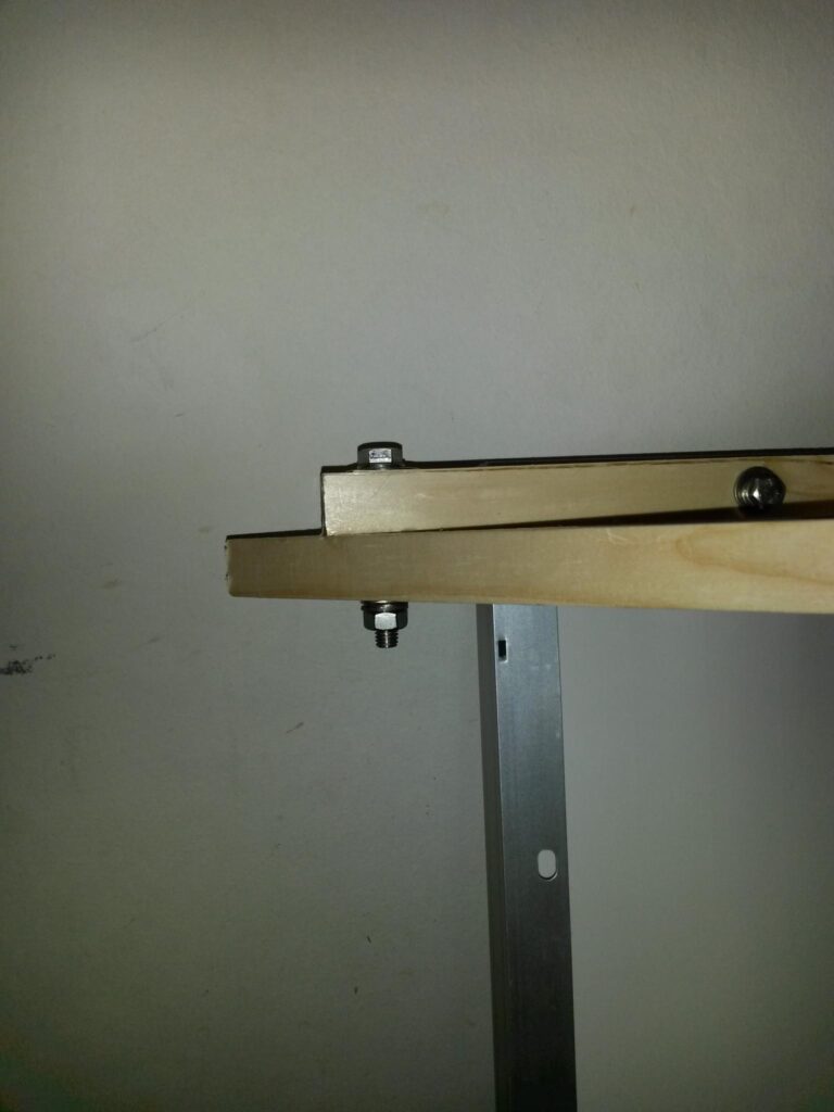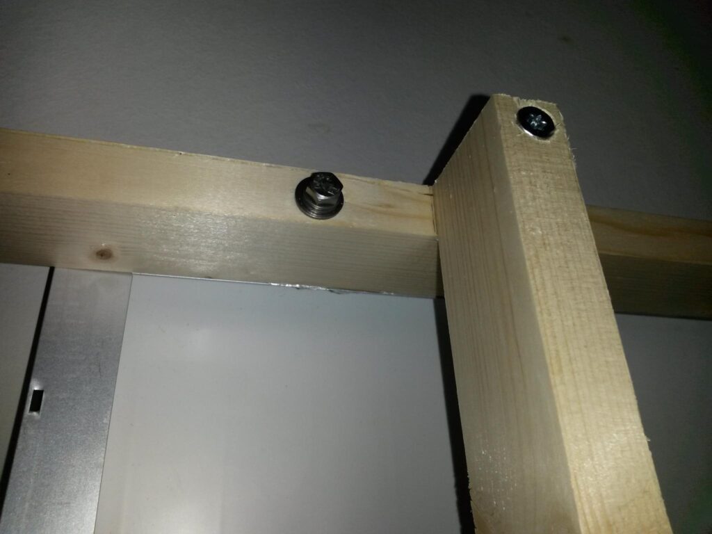 J’ai percé le bois et l’alu du cadre ensemble. J’ai mis de la colle à bois avant ou utiliser des serre joint : on se débrouille.